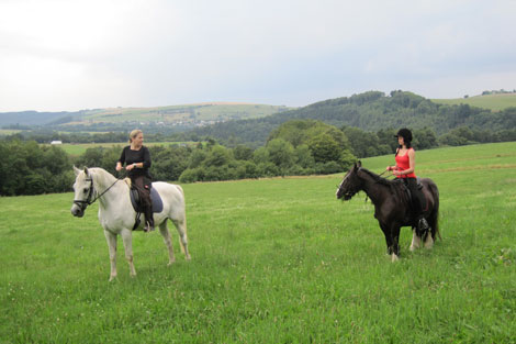 Einmal in der Woche hat man auch Reitstunden, wo man dann Reiten an sich lernen kann oder auch voltigiert, Pferdegymnastik macht oder ausreitet.